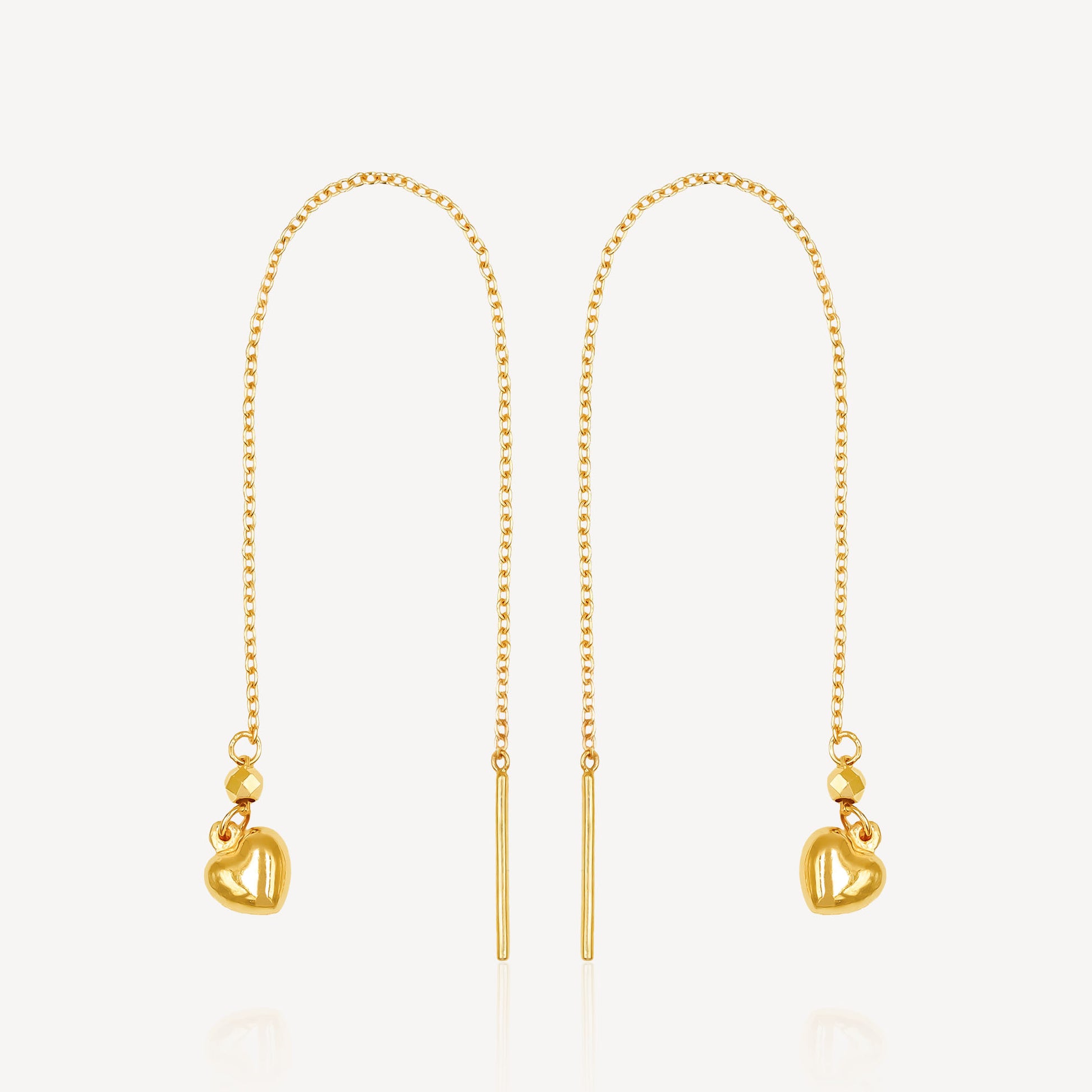 Crafted from 999 pure gold, these threader earrings showcase an exquisite 3D love motif that captures light beautifully from every angle. The threader design allows for effortless styling—simply thread through pierced ears for a secure, comfortable fit that moves gracefully with you. Perfect for those who appreciate fine jewelry with meaningful symbolism, these pieces combine contemporary design with the timeless elegance of high-purity gold. An ideal choice for daily wear or special occasions.