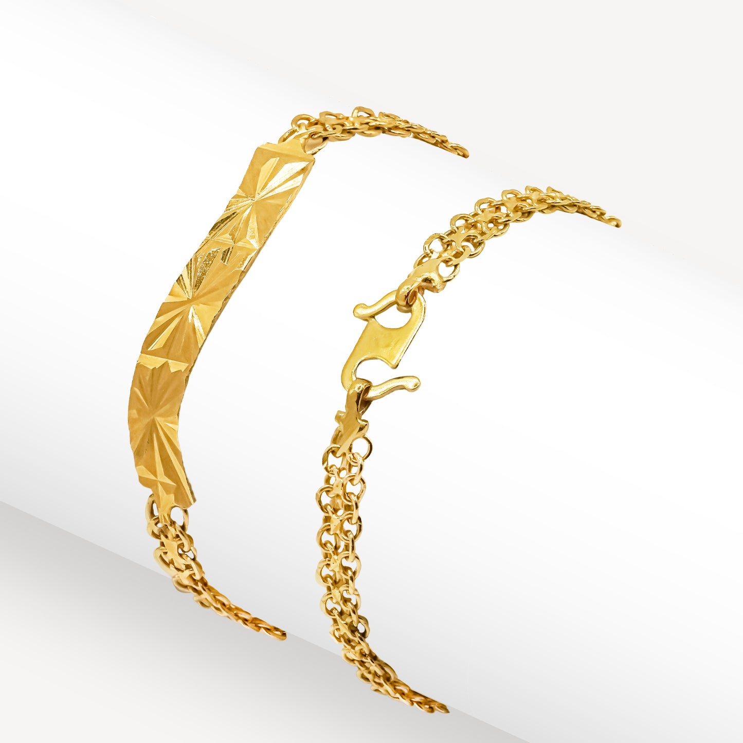 Crafted from high-quality 916 gold, this shield chain bracelet is a luxurious addition to any jewelry collection. With its intricate design and durable construction, it is perfect for everyday wear or special occasions. Showcasing your impeccable taste and style has never been easier.
