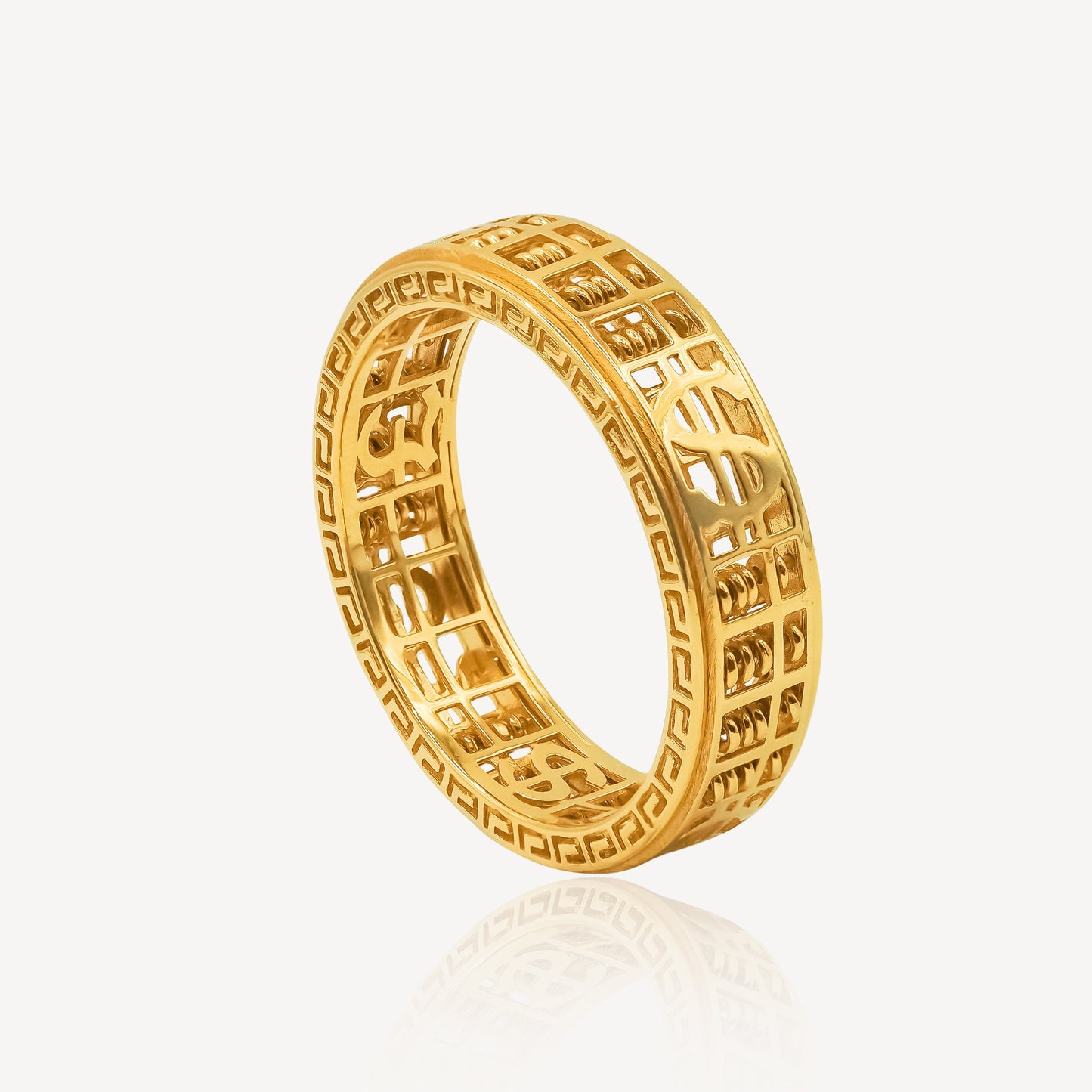 Expertly crafted in 916 gold, this Thin Abacus Dollar Ring offers a sleek and sophisticated design. Its intricate abacus detailing evokes wealth and prosperity, making it the perfect statement piece for any outfit. A timeless addition to any jewelry collection.