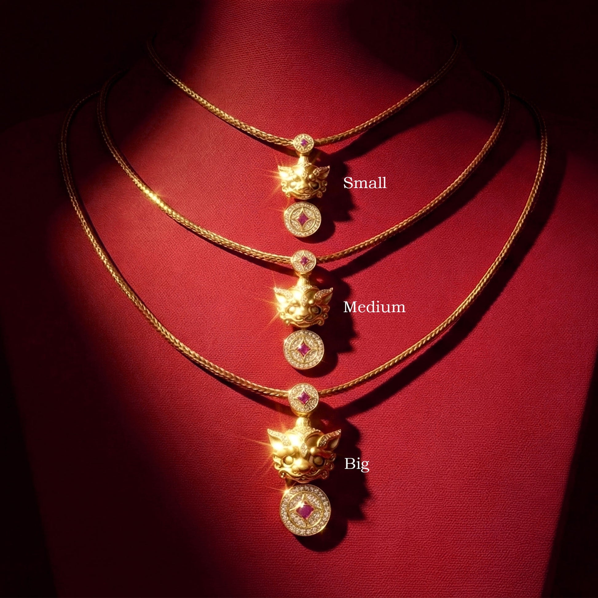 999 Gold 吞金兽 with Rope Necklace (Medium)
