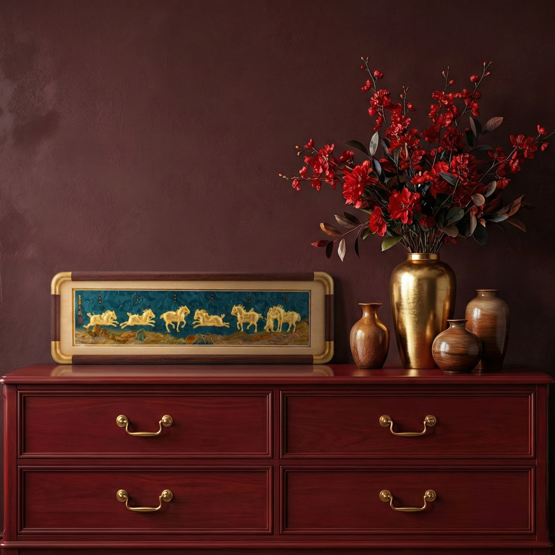 Celebrate prosperity and majesty with this exquisite 999 Gold 皇家六骏马 (Royal Six Horses) Ornament. Crafted from pure 999 gold, this piece embodies traditional Chinese symbolism where six galloping horses represent boundless fortune, success, and upward momentum. The intricate design captures the dynamic energy and noble grace of these legendary steeds, making it an ideal addition to your home or office. Perfect for auspicious occasions, this ornament serves as both a stunning decorative accent and a meaningful symbol of achievement and good fortune.