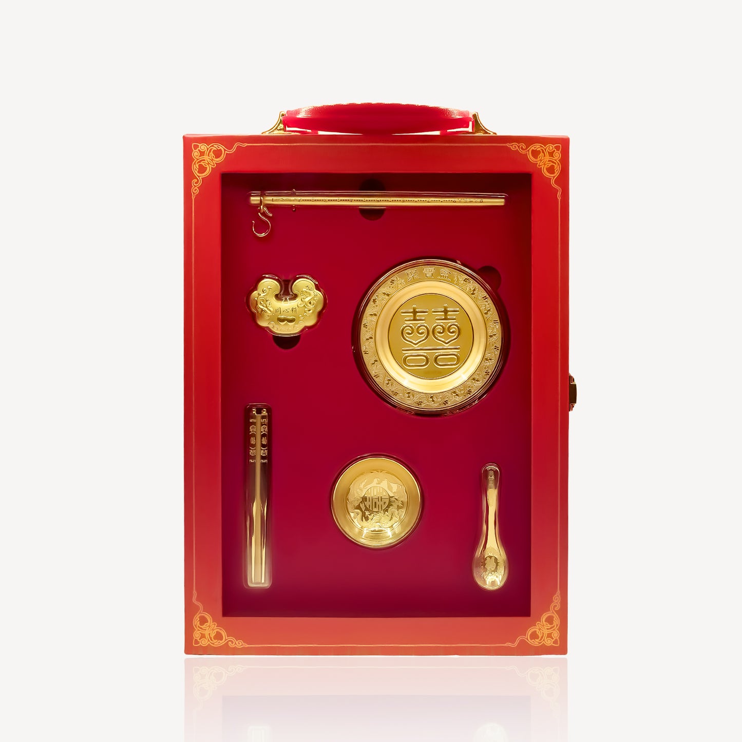 Introducing the 999 Gold 称心如意 Sets Ornament, the perfect gift for weddings! Made with 999 gold, this set symbolizes good luck, prosperity, and success. An elegant and meaningful gift that will be cherished by the happy couple for years to come. Give the gift of fortune with our 999 Gold 称心如意 Sets Ornament.