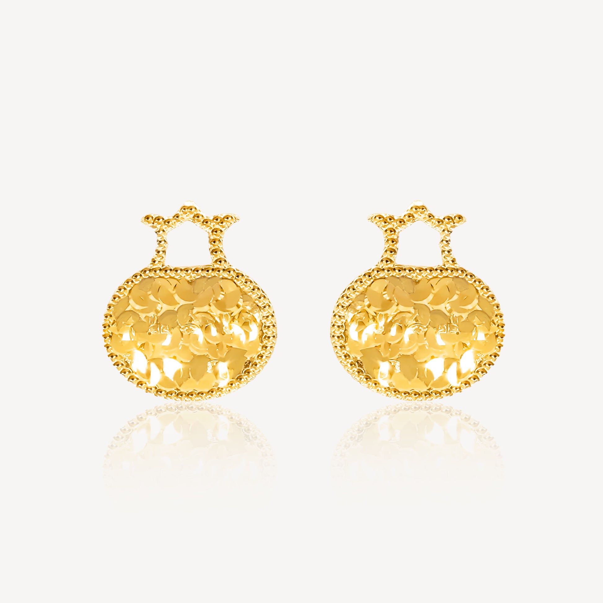 这款星空耳环采用优质916金打造,优雅隽永,经久耐用。其精致的设计捕捉了微妙的星空图案,使其成为日常佩戴和特殊场合的优雅之选。这款耳环经过精心打磨,外观光滑抛光,兼具奢华与坚韧,是您珠宝收藏中的珍品。