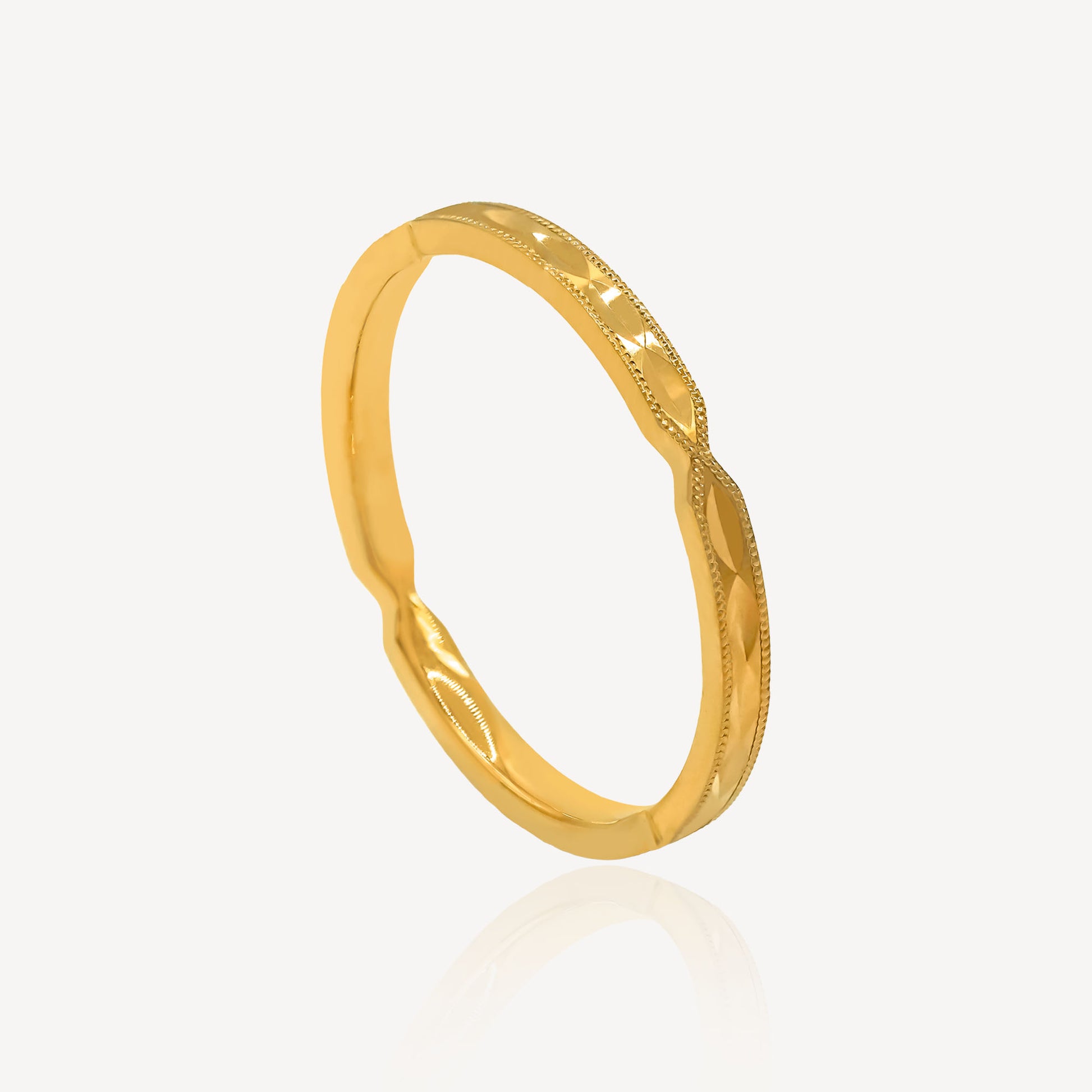 Crafted from premium 916 gold, this infinity crush ring seamlessly blends timeless symbolism with contemporary design. The flowing infinity motif represents eternal connection, while the crush technique creates a textured, dimensional surface that catches light beautifully. Its refined finish and substantial gold content make it an investment piece suitable for daily wear or special occasions. Perfect for those seeking meaningful jewelry that transcends trends.