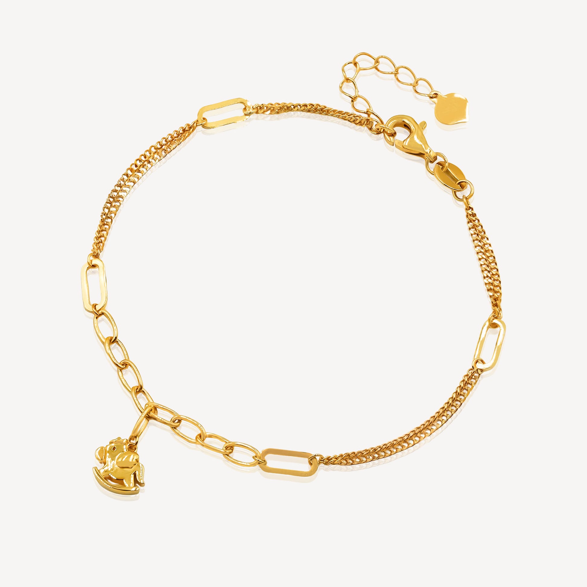 This exquisite 916 gold rocking horse bracelet combines timeless elegance with symbolic charm. Crafted from premium 916 gold—a superior alloy prized for its durability and rich luster—this piece features an intricately detailed rocking horse pendant that captures movement and nostalgia. The refined craftsmanship ensures lasting brilliance, while the secure clasp provides everyday wearability. Perfect for collectors and those seeking meaningful jewelry, this bracelet seamlessly transitions from casual wear to special occasions, making it a versatile addition to any refined collection.